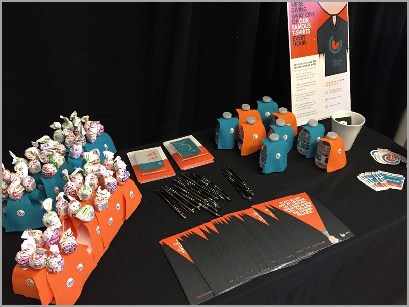 As you are sharing the space with other companies, some of them direct competitors; generating interest in your booth is imperative. You can get creative to accomplish this task: consider an interesting booth design, a theme with interactive elements, a contest, swag giveaways, etc.