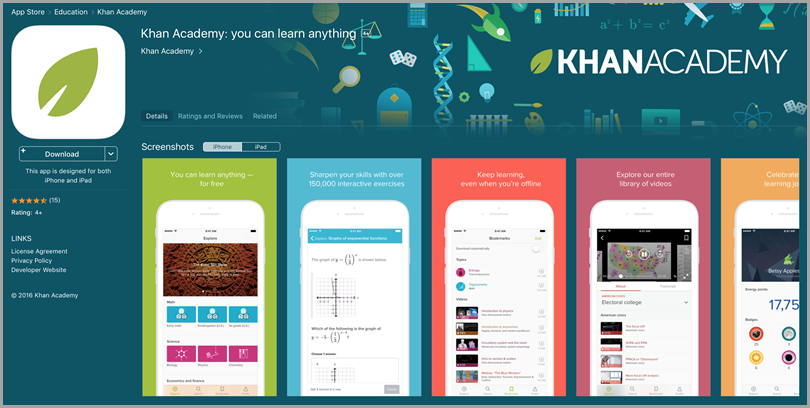 Here is Khan Academy giving a lot of helpful information about its app through detailed screenshots: