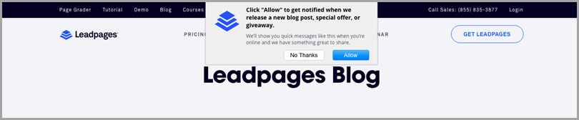 Opt-in request on the Leadpages blog